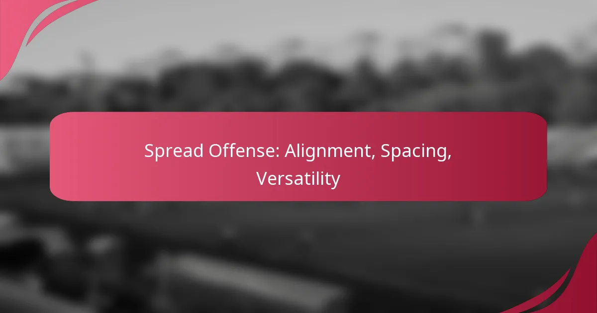 Alignment in spread offense focuses on player positioning to maximize space and create mismatches against defenses. Proper alignment allows for versatile play calling and effective use of the field, making it crucial for offensive success.